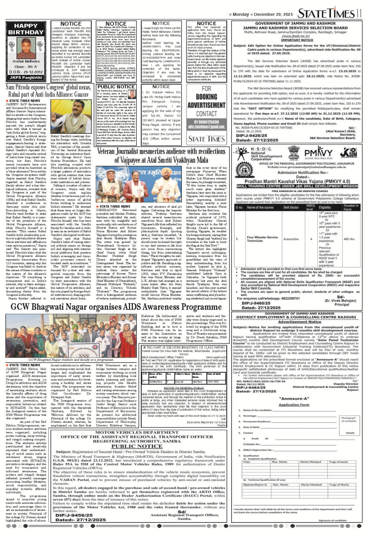 Monday, December 29, 2025